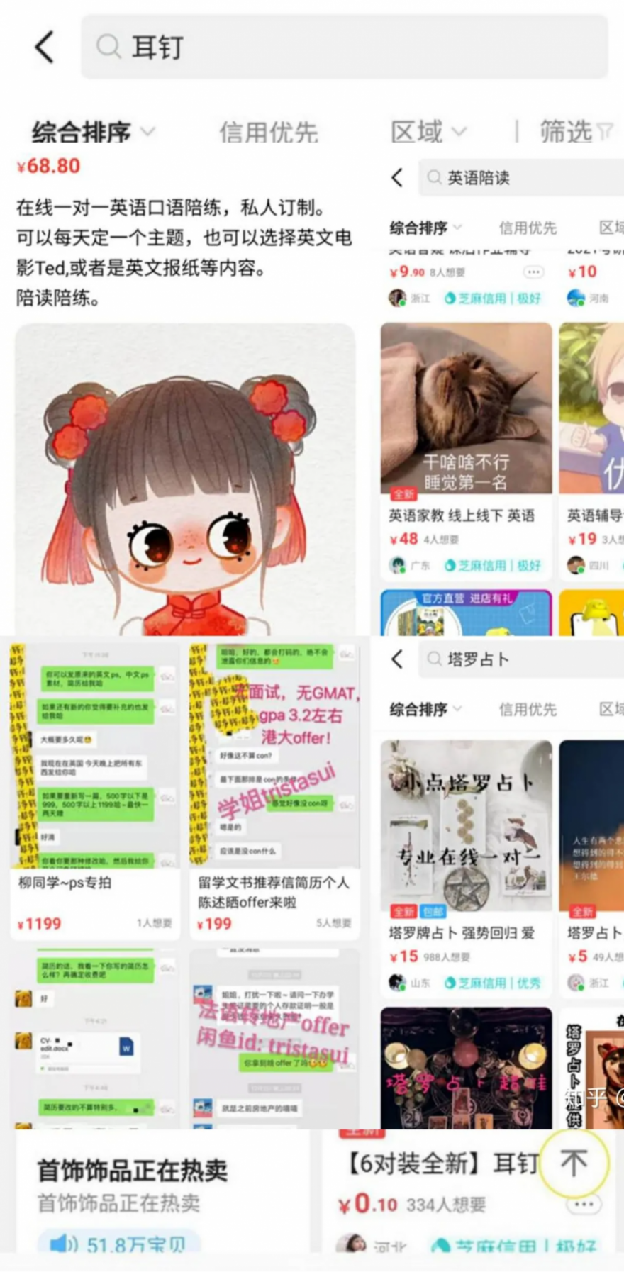 至于要卖哪款产品,就完全可以由你的个人兴趣来定。如果你平时买耳钉比较多,你对耳钉比较了解,那就可以在平台搜索合适的耳钉款式,然后通过在平台搜同款,找一个价格最低的货源,问清楚发货时间、快递之类的信息,然后就可以加价挂到闲鱼平台了。